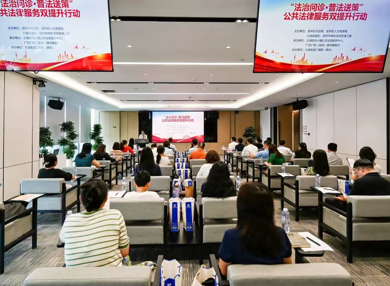 一直以来,龙华区公共法律服务中心以精准普法回应企业所需、群众所盼。2025年4月,印发《深圳市龙华区“法治问诊·普法送策”法律服务双提升行动方案》,该行动聚焦企业“点单式”法律需求和群众普遍关心的法律问题,灵活组建“律师+调解员+公证员”服务团队,形成“菜单式选课、订单式配送、跟踪式评估”的普法新模式。