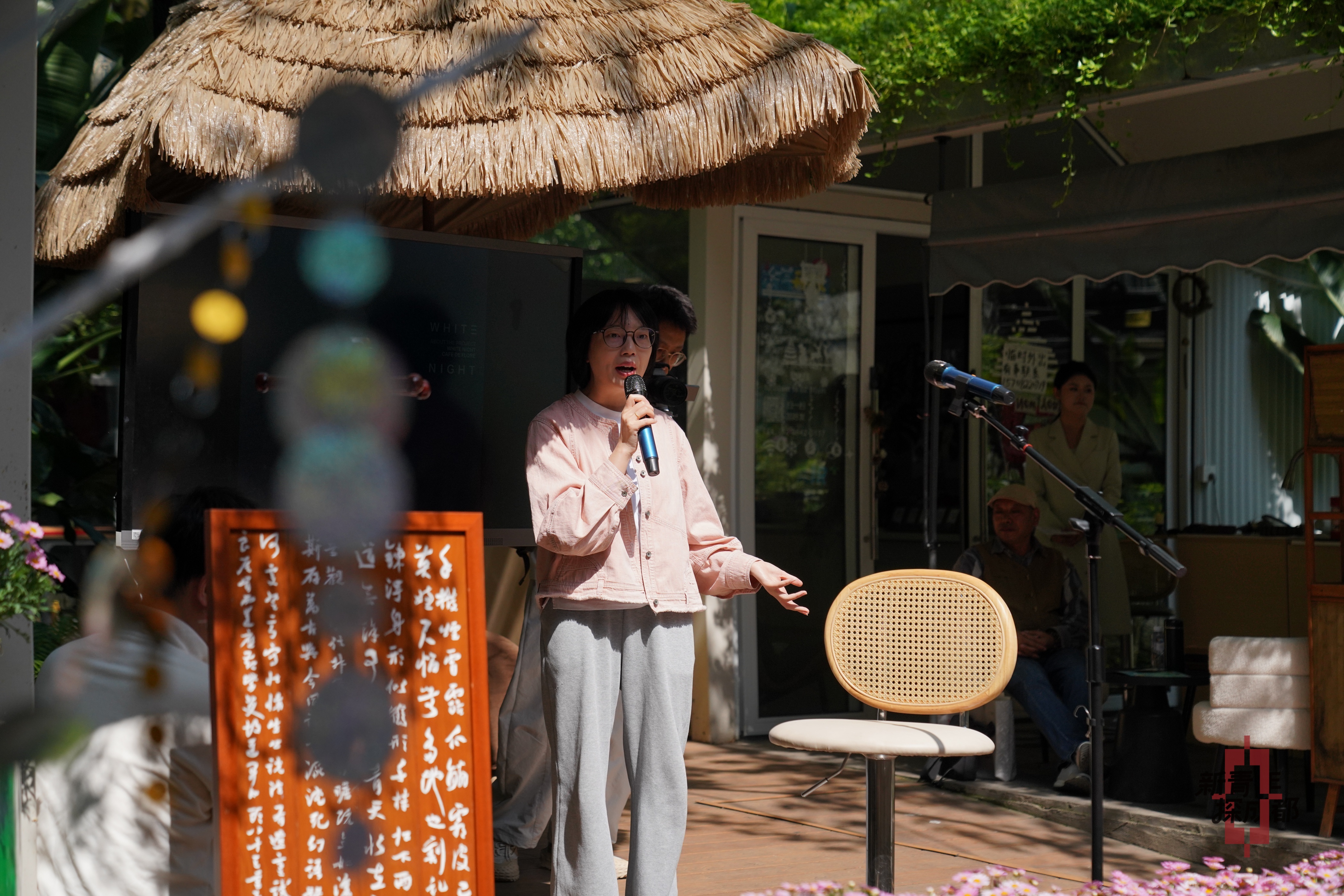 街巷寻访结束后,一场分享交流会在院落里举行。蓓蕾社区老党员工作室牵头人彭红成与成都市花卉协会理事、社区规划师成境先后分享。随后,民谣音乐人蒲聪抱起吉他,唱起《成都》。熟悉的旋律响起,学生们不约而同地跟着哼唱:“和我在成都的街头走一走,直到所有的灯都熄灭了也不停留……”歌声飘出院落,融进芳华街的春日阳光里。