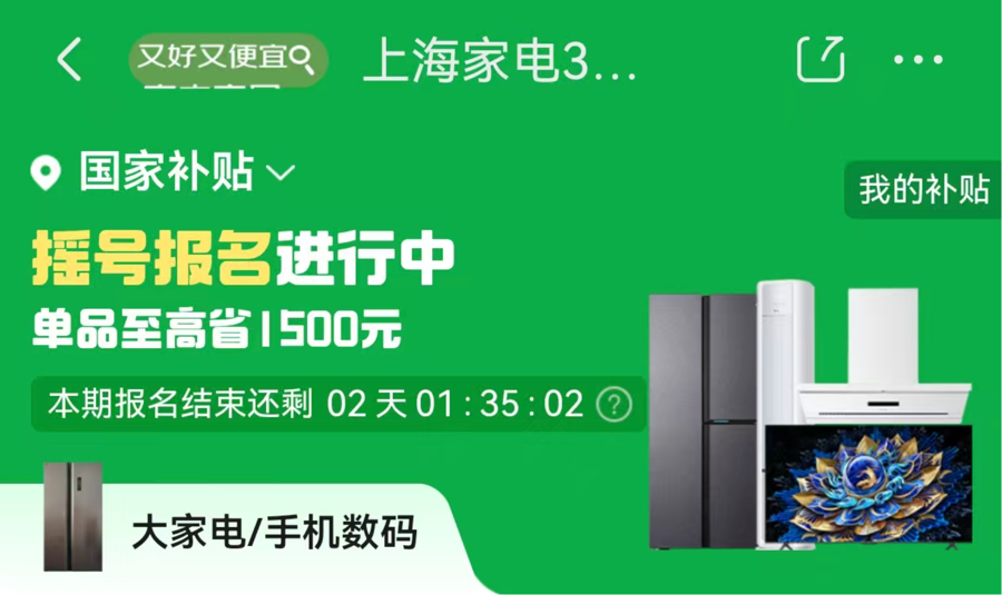 新年伊始,2026年国家以旧换新补贴落地上海,京东线上线下全面承接国家补贴落地。上海消费者到京东App搜索“上海市以旧换新”即可进入国补页面,购买活动指定的冰箱、洗衣机、电视、空调、电脑、热水器产品,单件/单次至高补贴1500元;购买活动指定的手机、平板、智能手表手环、智能眼镜产品,单件/单次至高补贴500元。单人累计至高可省11000元。此外,京东也带来海量爆款好物,即日起,上京东领国补,买手机、电脑、家电等好物低至五折。